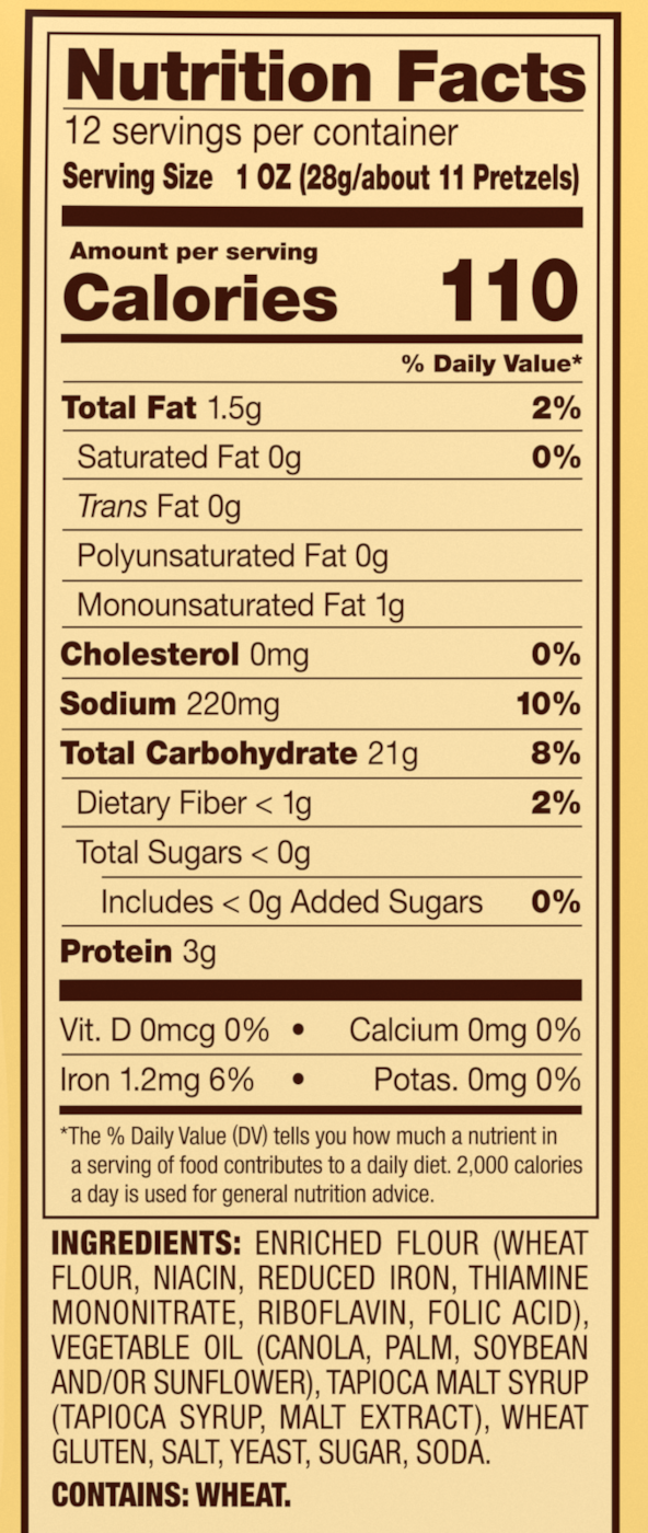 Our Homestyle Pretzels are slow-baked to offer robust flavor on the inside and a deep, dark crunch on the outside. They’re perfect for snacking or entertaining. You’ll love this full-flavored snack with only 1 gram of fat per serving.